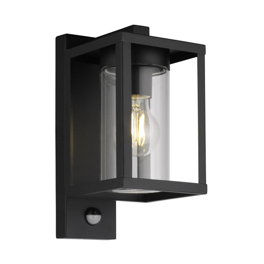 CGC ALLY Black E27 Outdoor Wall Light Lantern Clear Diffuser IP44 with PIR Motion Sensor